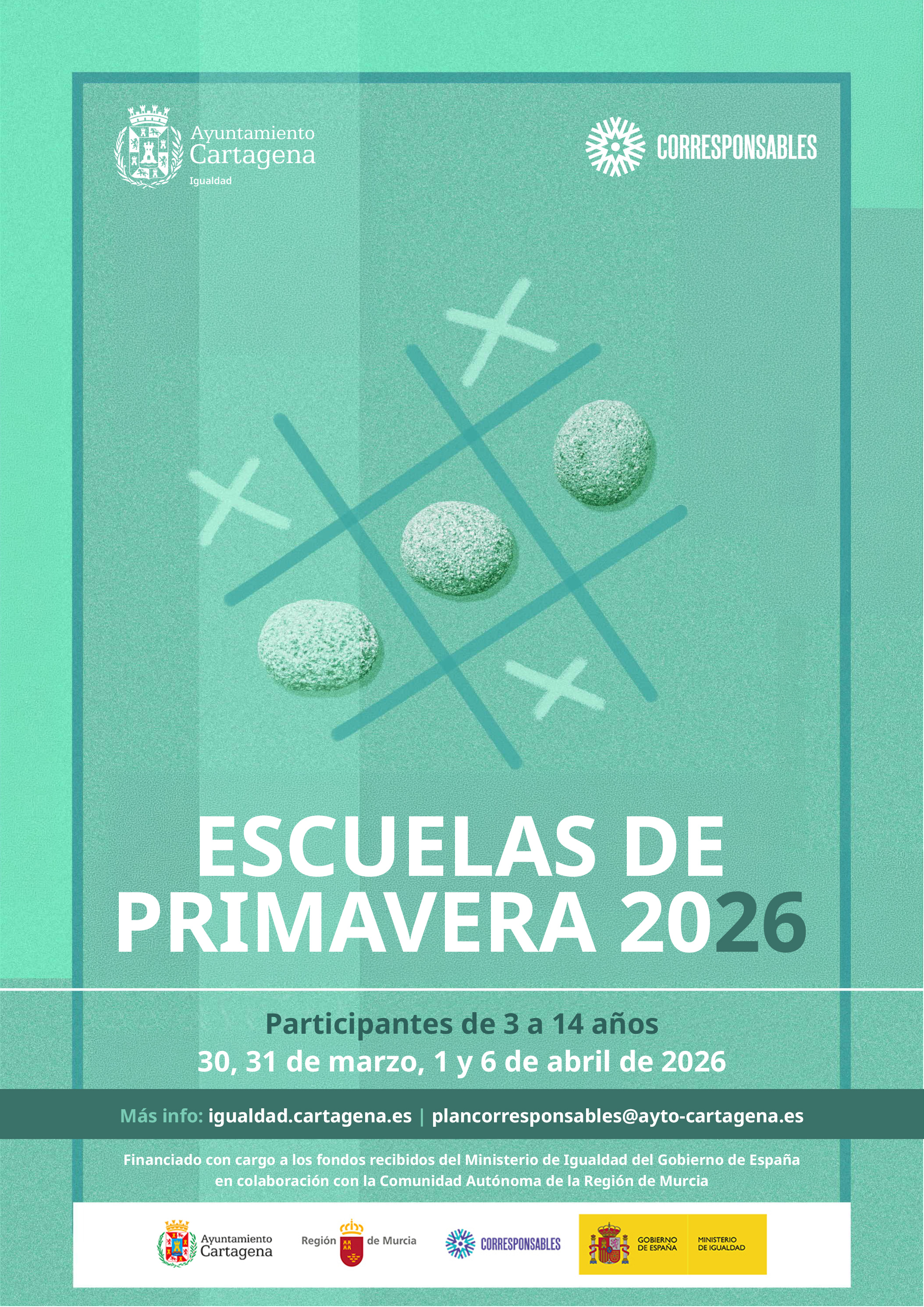 Financiado con cargo a los fondos recibidos del Ministerio de Igualdad, Secretaría de Estado de Igualdad y para la Erradicación de la Violencia contra las Mujeres, en colaboración con la Comunidad Autónoma de la Región de Murcia en el marco del Plan Corresponsables.